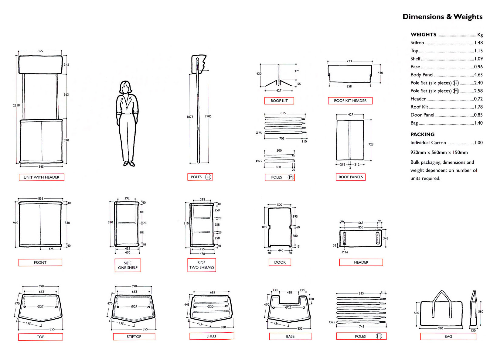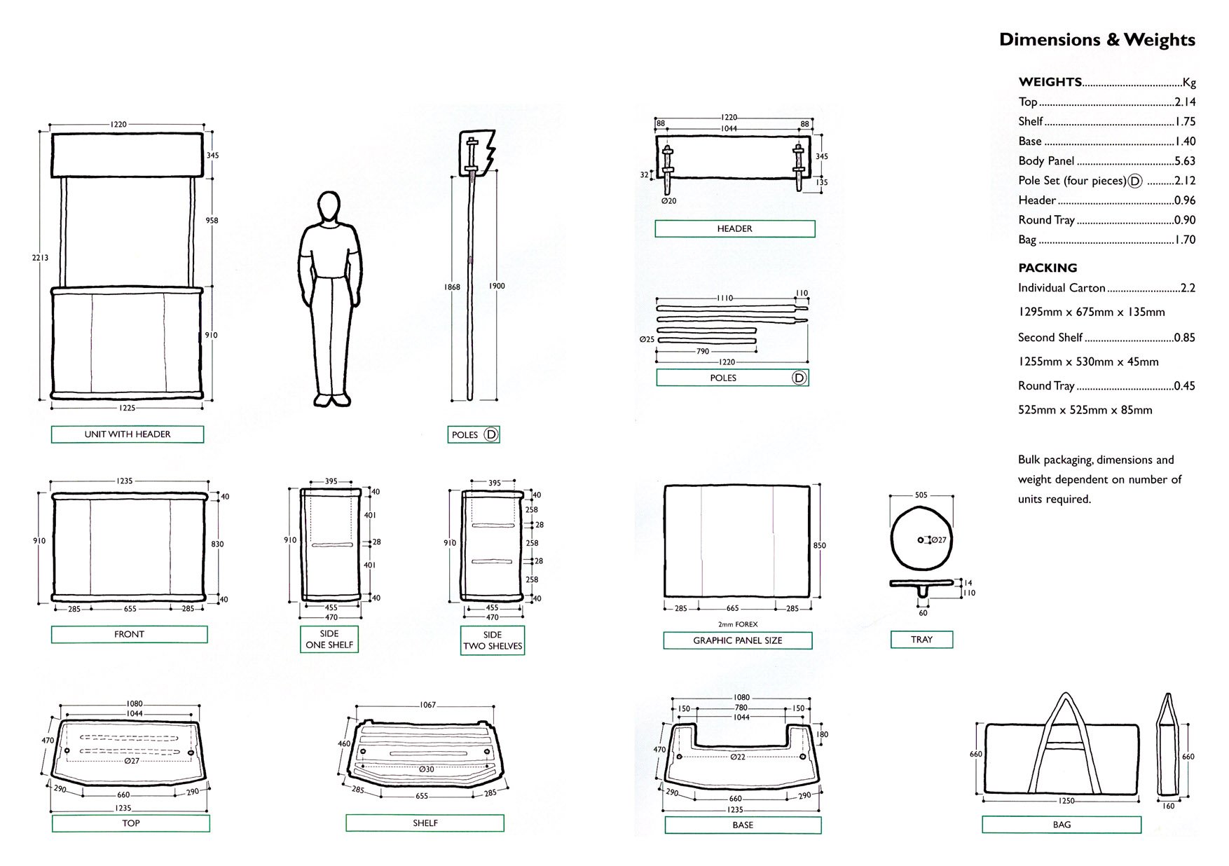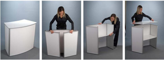 Ogrodje 4-stranega pulta je iz eloksiranega aluminija, paneli so iz forex-a. Grafiko se izdela iz samolepilne folije, ki se na panele nakašira. Promocijski pult je enostavno sestavljiv.